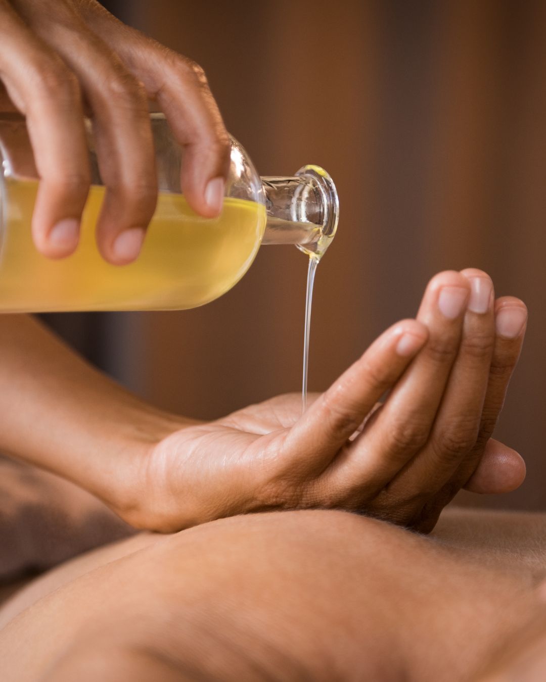 - Massaggio con Olio Caldo: La caratteristica distintiva è l’uso abbondante di olio caldo, spesso medicato con erbe specifiche, scelto in base alla costituzione individuale (i Dosha: Vata, Pitta, Kapha) o al bisogno del momento.
